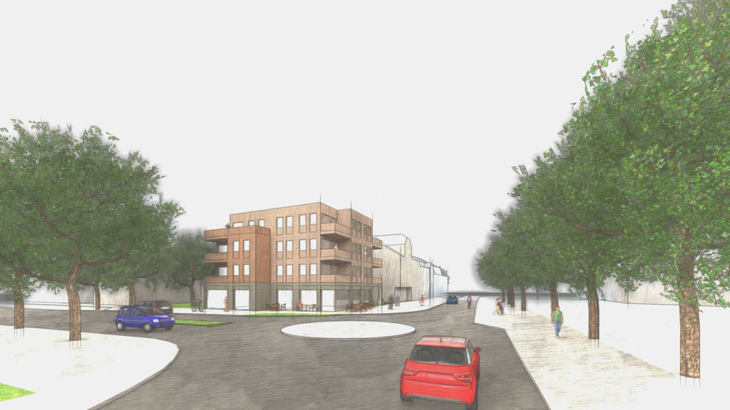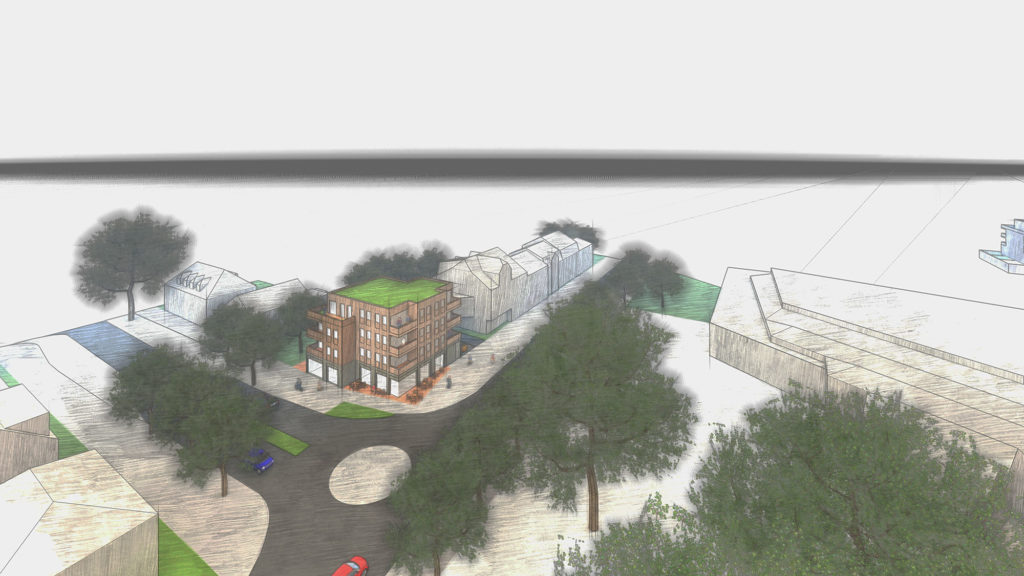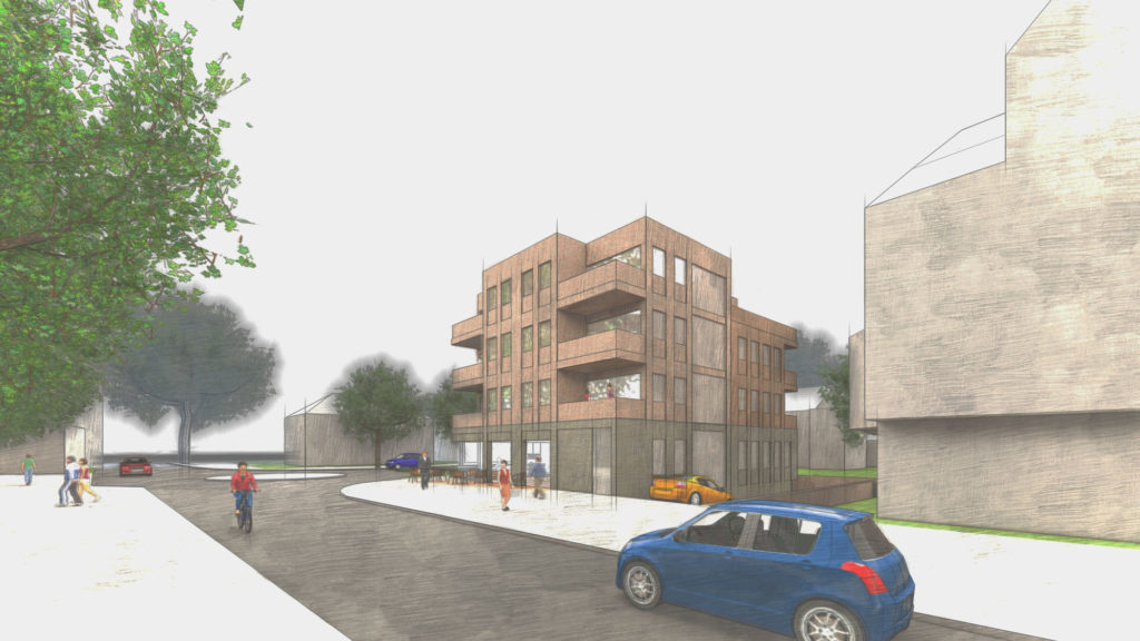 An prominenter Stelle, gegenüber der Kamener Stadthalle, wird ein neues Mehrfamilienhaus mit 8 Wohneinheiten und einer gewerblichen Erdgeschosszone geplant.