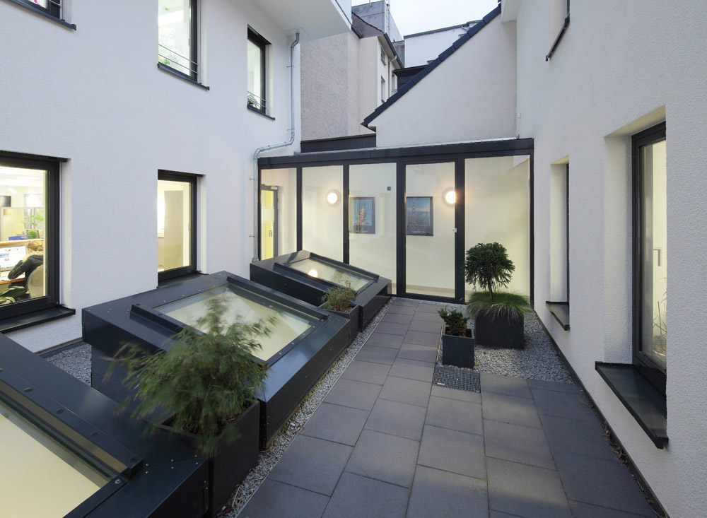 Neben den hohen gestalterischen Ansprüchen stand der Wunsch nach einem zeitgemäßen effizienten Gebäude im Vordergrund. Diesem Gedanken wurde Rechnung getragen durch den Einbau einer Erdwärmepumpe mit Fußbodenheizung sowie Heiz- und Kühldecken im Bereich des Reisebüros, einem kontrolliertem Lüftungssystem mit Wärmerückgewinnung sowie dem Einsatz von energieeffizienten Leuchten.