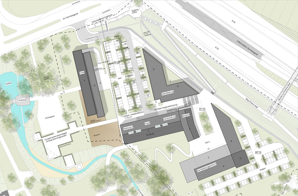 Am Rande des botanischen Rombergparks soll auf dem historischen Gelände des ehemaligen Schloss Romberg und des zugehörigen Gutes Brünninghausen ein neues städtebauliches Konzept zur Belebung der brachliegenden Flächen entwickelt. Das Konzept sieht im Kern mehrere Höfe vor, um die sich wie früher Gebäudekörper anordnen. Die historischen Raumkanten des Altbestandes wird dabei zugrunde gelegt.